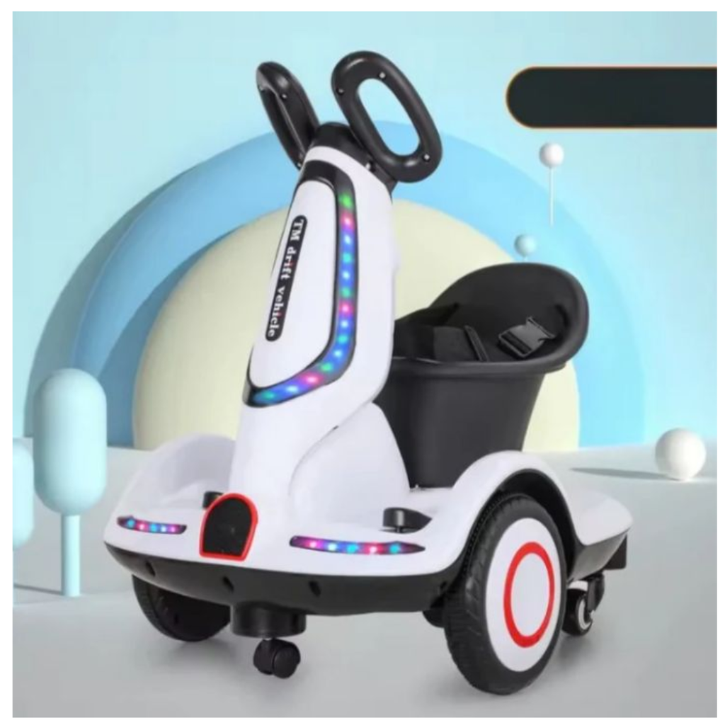 Com estrutura em plástico e metal e bateria íon‑lítio recarregável, a Turbo Drive foi pensada para durar. O assento com cinto ajustável mantém a criança segura, enquanto os LEDs e o Bluetooth trazem um toque moderno aos passeios.
