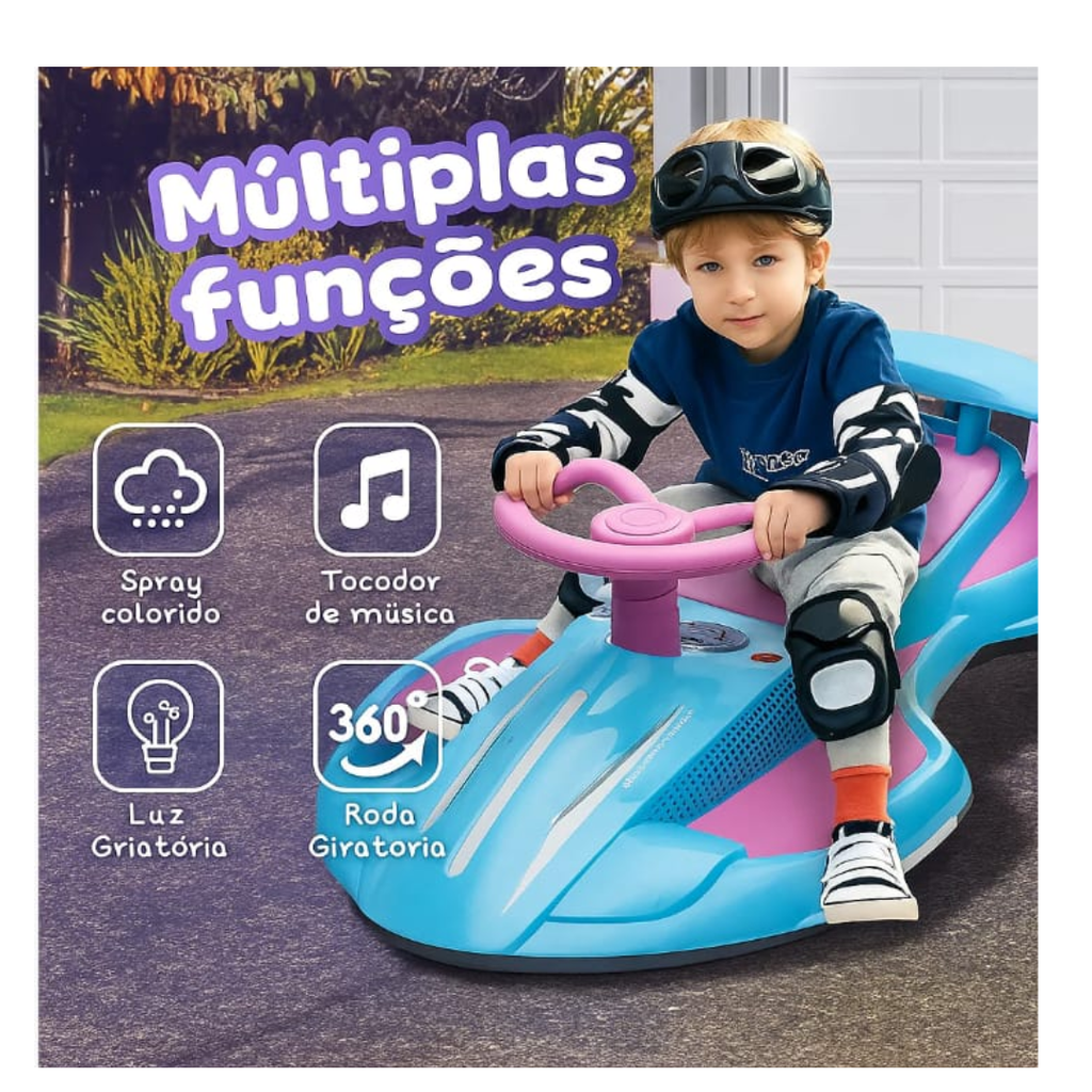 Carrinho Elétrico Infantil com Giro 360°, Luzes Frontais e Laterais (+ BRINDE EXCLUSIVO)
